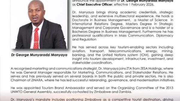 The Zimbabwe Tourism Authority (ZTA) has appointed Dr. George Munyaradzi Manyaya as its new Chief Executive Officer, with immediate effect, the Authority announced on...