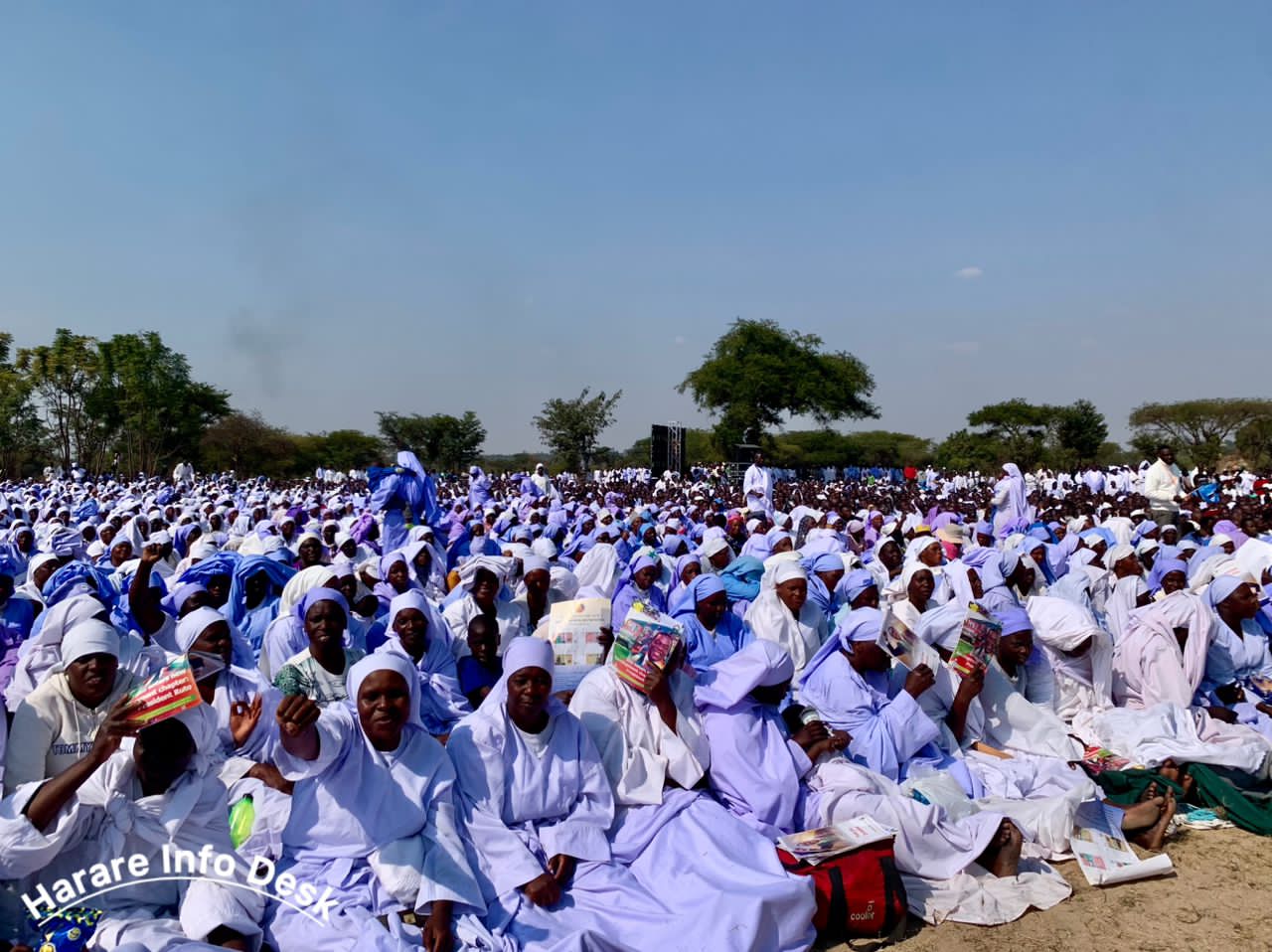 Thousands of Vapostori and Mazion For 4ED members from all 12 provinces of Zimbabwe have converged at the Open Space in Harare for a thank you rally in support of President Emmerson Mnangagwa.