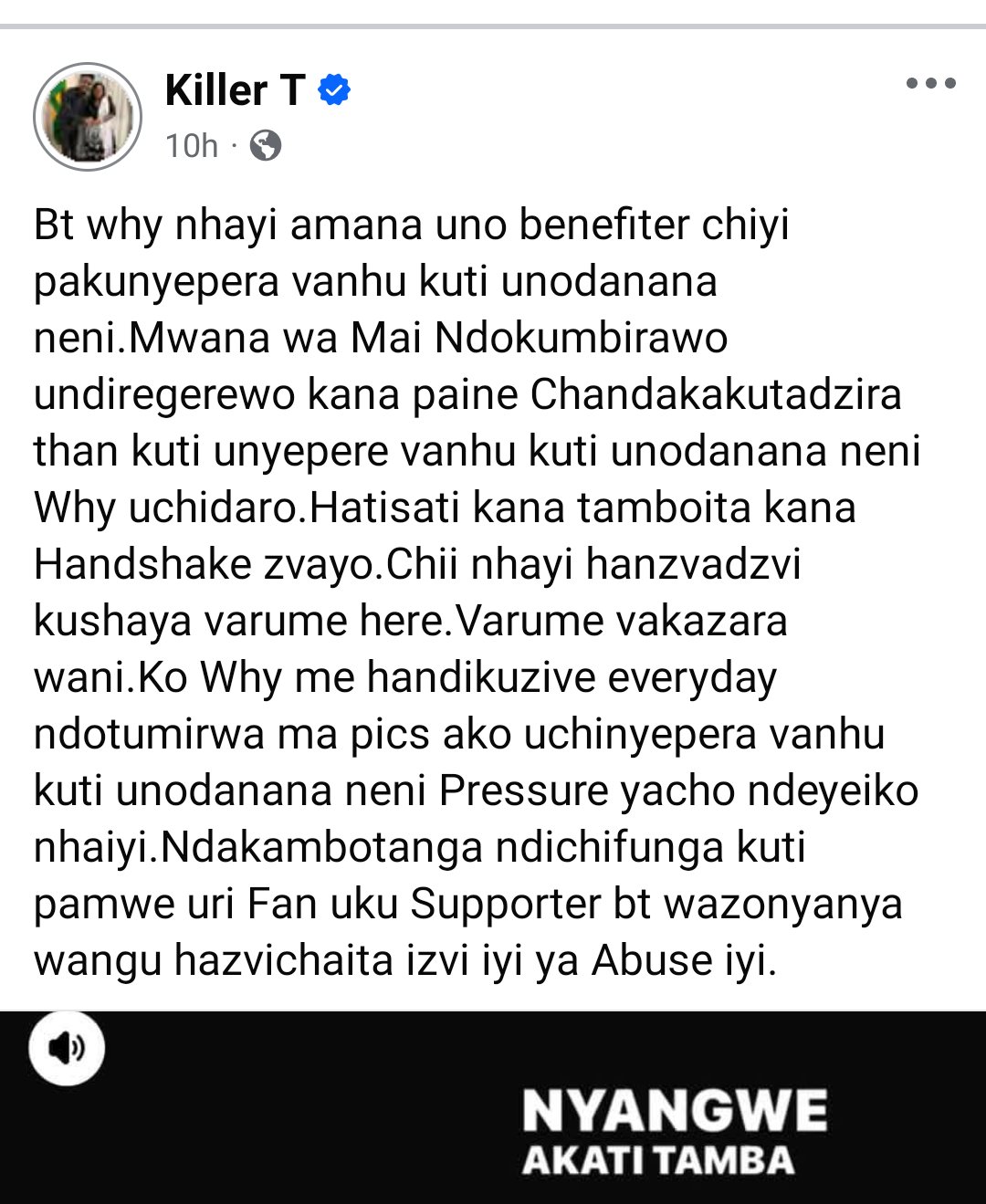 Zimdancehall musician Killer T has become the subject of controversy after a woman claiming to be his mistress alleged that he fathered her child and subsequently abandoned her.
