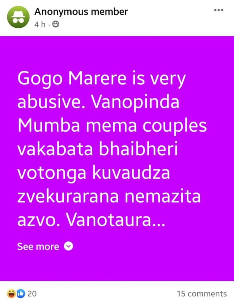 In another post, an anonymous user shared that Gogo Marere warned tenants against getting pregnant while residing in her house, imposing her own rules on cohabitation. The discontent with her behavior is evident, with an anonymous user describing her as abusive. Allegedly, she intrudes into couples’ bedrooms, brandishing a Bible while discussing sexual education with vulgar language.