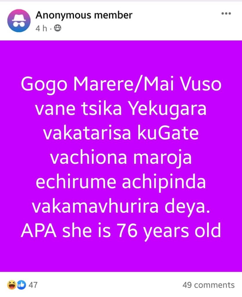 Despite being 76 years old, Gogo Marere’s behavior has made her tenants uneasy. A participant in the group, using the username “Mukoma Gwenzi,” revealed that Gogo Marere engages in inappropriate behavior, sitting near the gate and staring provocatively when a male tenant enters. In a cautionary post, Mukoma Gwenzi advised fellow tenants against renting from Gogo Marere.