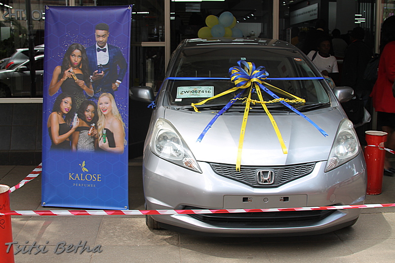 Just for purchasing a Kalose fragrance Betah qualified for the grand draw in which he won a brand new Honda Fit while the second prize winner Zibwowa will be going on an all expense paid trip for two to Sun City in South Africa.