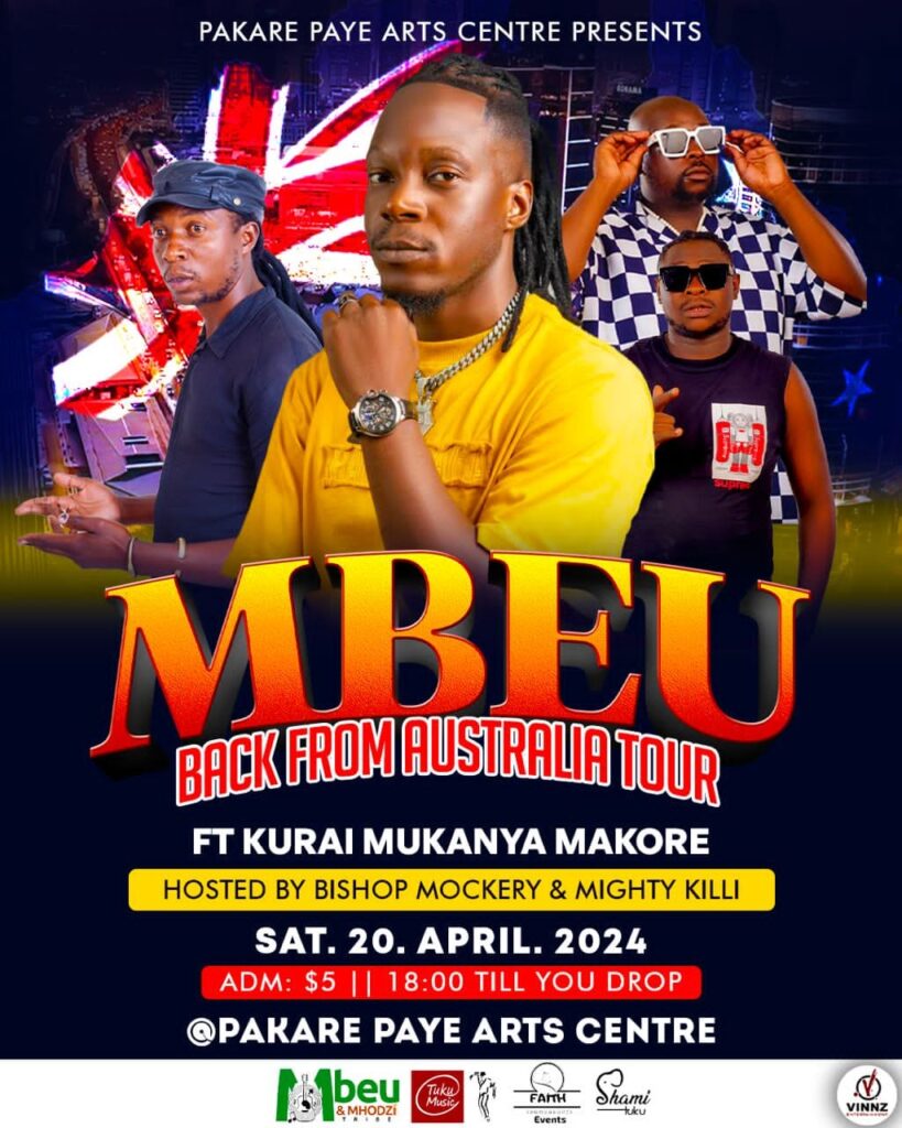 Afro-fusion artist Mbeu will take the stage at Pakare Paye Arts Centre this Saturday, joined by Chimurenga musician Kurai Makore and the Black Lions, for a captivating homecoming concert starting at 6 pm until late. Admission to this event is $5.