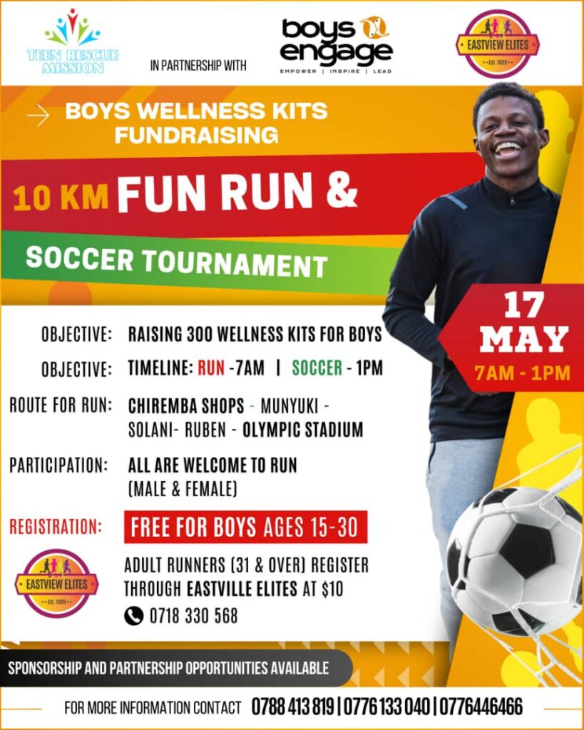 The countdown is on! The Teen Rescue Mission (TRM), in partnership with Boys Engage and supported by Eastview Elites, is excited to announce the upcoming Fun Run, taking place in Epworth. This event aims to raise awareness and support for the Boy Child, highlighting the importance of community involvement in fostering wellness and empowerment.